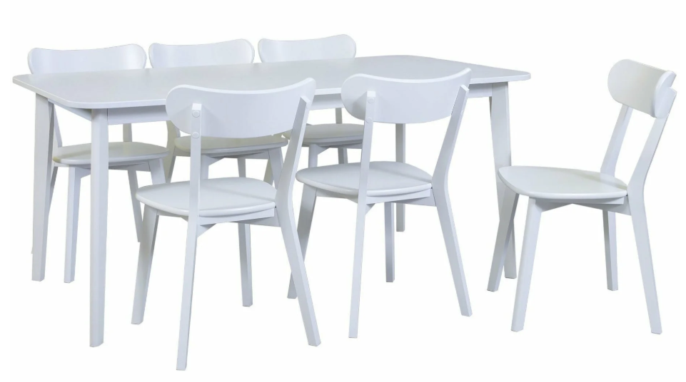 The "Mango" set – table + six chairs – is a classic and elegant dining set made of painted wood. Designed for six people, it is an excellent choice for everyday use, as the chairs are sturdy and comfortable to sit on. The table measures 170 x 85 cm.
